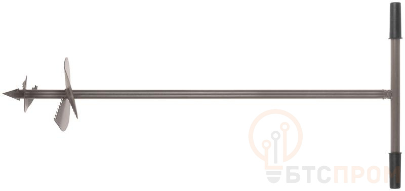 Бур садовый шнековый. Разборный, с возможностью увеличения длины за счет использования удлинителя 77248. Для ручного формирования скважин в грунте, предназначенных для установки различных опор, столбов, заливки свайных фундаментов и т.д. Материал: инструментальная сталь.