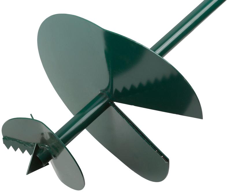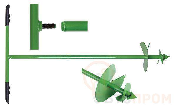 Бур садовый шнековый. Разборный, с возможностью увеличения длины за счет использования удлинителя 77248. Для ручного формирования скважин в грунте, предназначенных для установки различных опор, столбов, заливки свайных фундаментов и т.д. Материал: инструментальная сталь.