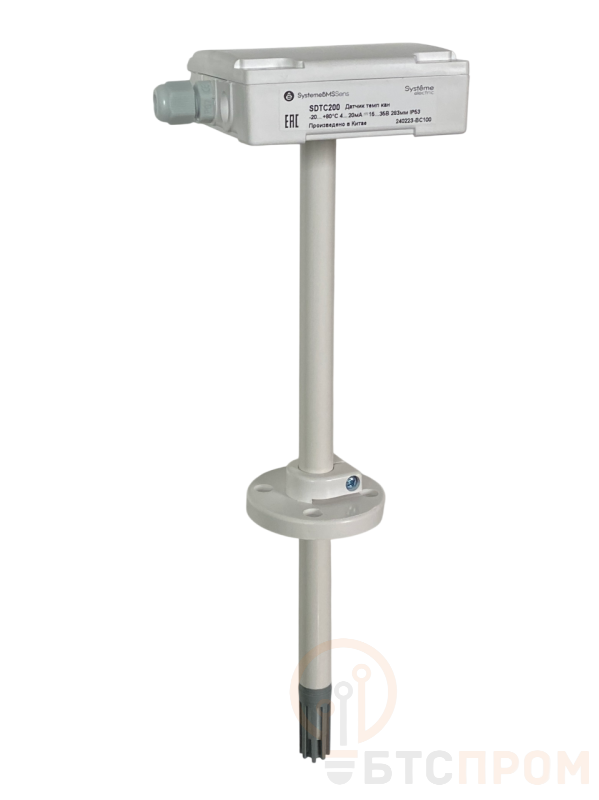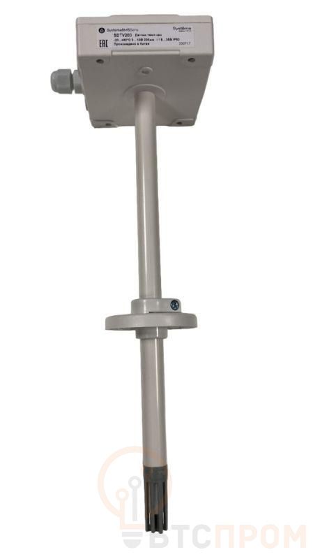 Датчик температуры канальный, для установки на воздуховод, монтажный фланец и кабельный ввод в комплекте, диапазон измерения -20…+80°С, выходной сигнал 4…20мА,, длина погружной части 283 мм, глубина погружения 40…265 мм,винтовые клеммы, степень защиты корпуса IP53, электропитание ?15…35В