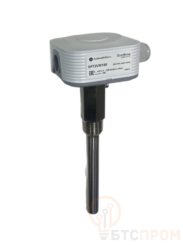 Датчик температуры погружной, диапазон измерения температуры 0…+100°С, выходной сигнал 0…10В, RS485/Modbus 150мм напряжение питания 24 В переменного тока±20%/=15…35В, в комплект поставки входит гильза 100 мм