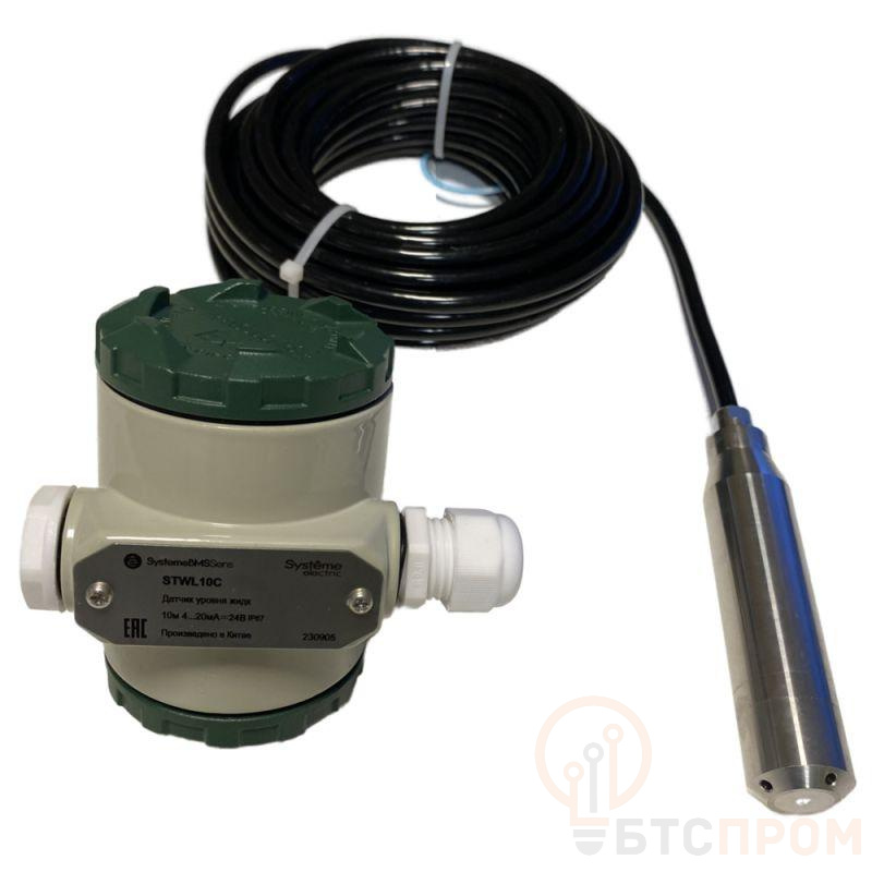Датчик уровня жидкости, глубина до 10 м, выходной сигнал 4…20 мА, напряжение питания 15…35 В постоянного тока