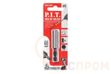 Держатель бит ударный магнитный P.I.T. ASDR07-SS060 — профессиональный адаптер для надежного соединения сверл и бит с силовым инструментом. Основная особенность модели — наличие специальной торсионной зоны, которая эффективно гасит вибрации и снижает ударные нагрузки на оператора и инструмент, повышая комфорт и точность работы.