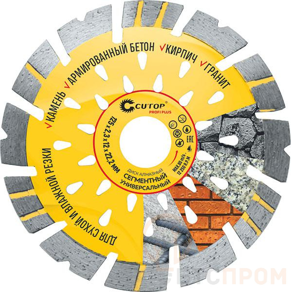 Диск отрезной алмазный сегментный универс. Profi Plus 125х2.3х12х22.2мм Cutop 68-934 фото в каталоге от BTSprom.by