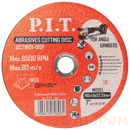 Отрезной диск по металлу P.I.T. ACTW01-1801 – это профессиональный абразивный инструмент для высокоскоростной резки черных металлов, арматуры, профиля и труб. Диск диаметром 180 мм и толщиной 1.6 мм обеспечивает быстрый и точный рез с минимальным сопротивлением и образованием грата.