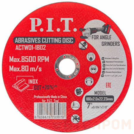 Отрезной диск по металлу P.I.T. ACTW01-1802 — это профессиональный абразивный инструмент для быстрой и точной резки черных металлов, сталей, арматуры и металлопрофиля. Диск диаметром 180 мм и толщиной 2.0 мм обеспечивает высокую скорость работы и чистый рез с минимальным количеством заусенцев.