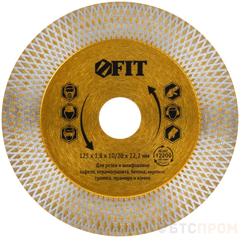 125 ? 1,8 ? 10/20 ? 22,2 мм. Универсальный. Для сухой и влажной резки и шлифования кафеля, керамо гранита, бетона, кирпича, мрамора и камня. Изготовлен по технологии горячего спекания. Предназначен для углошлифовальных машин. Посадочный диаметр 22,2 мм. Материал: инструментальная сталь, режущая кромка содержит порошок из технических алмазов. Тип упаковки: блистер. • Х-образный рисунок режущей кромки обеспечивает эффективное охлаждение и отвод пыли во время реза, предотвращая перегрев диска; • Высокая концентрация алмазов на режущей кромке повышает износостойкость и эффективность реза; • Специально подобранные компоненты металлической связки дают возможность реза широкого спектра материалов; • Технология горячего спекания обеспечивает высокую износостойкость и длительный срок службы диска; • Высота режущих кромок 20 мм с одной стороны и 10 мм с другой повышают вариативность во время шлифования.