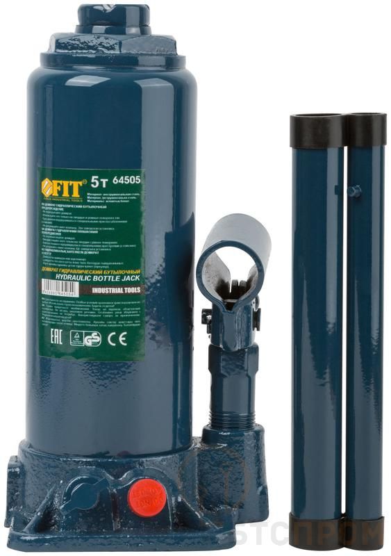 Домкрат гидравлический бутылочный FIT IT предназначен для подъема грузов. Компактный размер и высокая грузоподъемность позволяют использовать домкрат для различных задач. Благодаря большой площади опоры бутылочный домкрат отличается устойчивостью и безопасностью при эксплуатации. Устройство может работать при низких температурах.