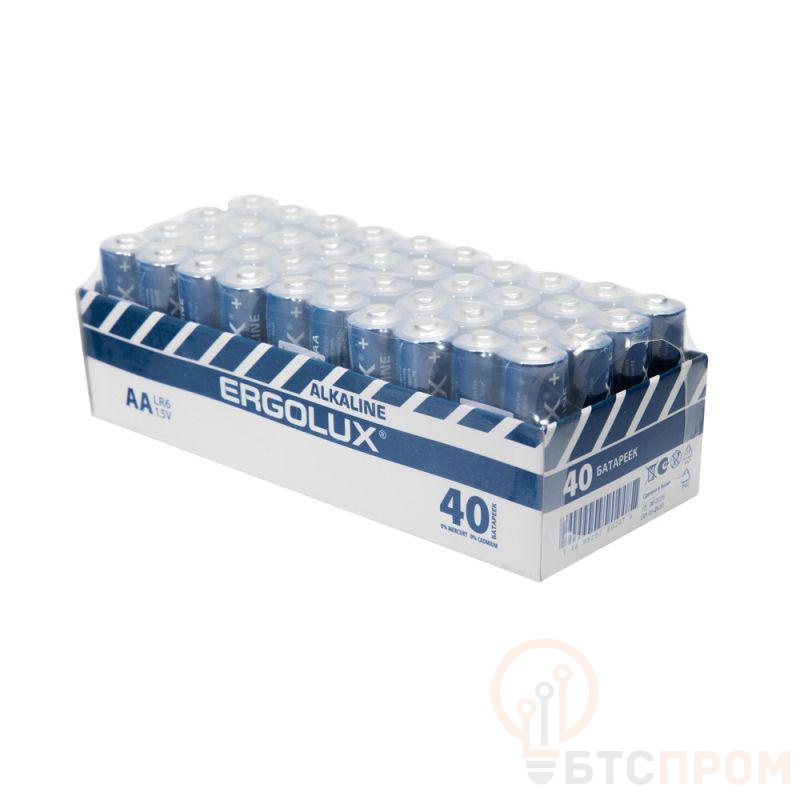 Элемент питания алкалиновый АА Alkaline LR6 BOX40 SP2 ПРОМО LR6 BOX40SP2 1.5В (уп.40шт) Ergolux 16019