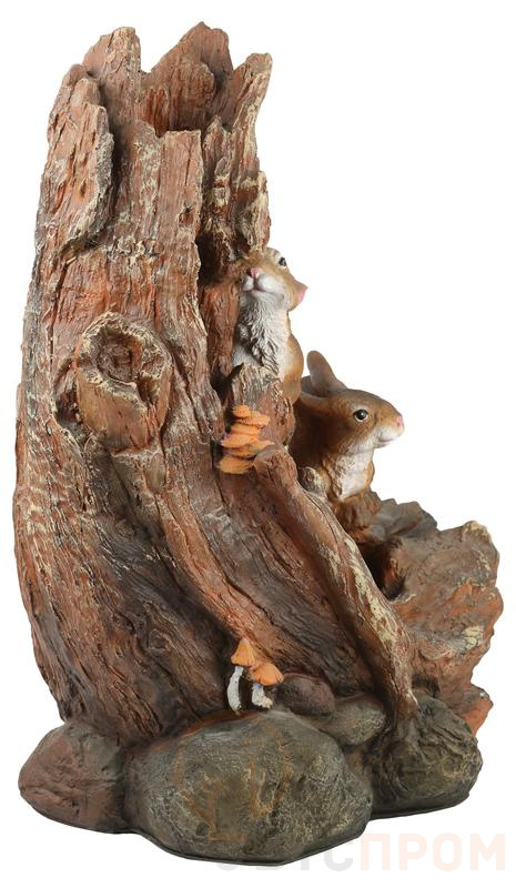 Садовый фонтан Green Apple GANF-05 «Зайчата» (арт. Б0057666) высотой 62 см изготовлен из полимерного камня-полистоуна. Водяной насос мощностью 6 Вт в комплекте. Экономичная замкнутая система: с помощью насоса вода направляется вверх, затем эффектно стекает вниз по декоративным элементам. Накопительная ёмкость – 11 литров. Фонтан садовый с интересным оформлением в виде двух зайчат у лесного ручья имеет светодиодную подсветку. Такая динамичная садовая декорация эффектно выглядит как в дневное, так и в ночное время. Созерцание потока воды с нежным журчанием благотворно влияет на психику. Садовые фонтаны Green Apple украшают сад и поднимают настроение.