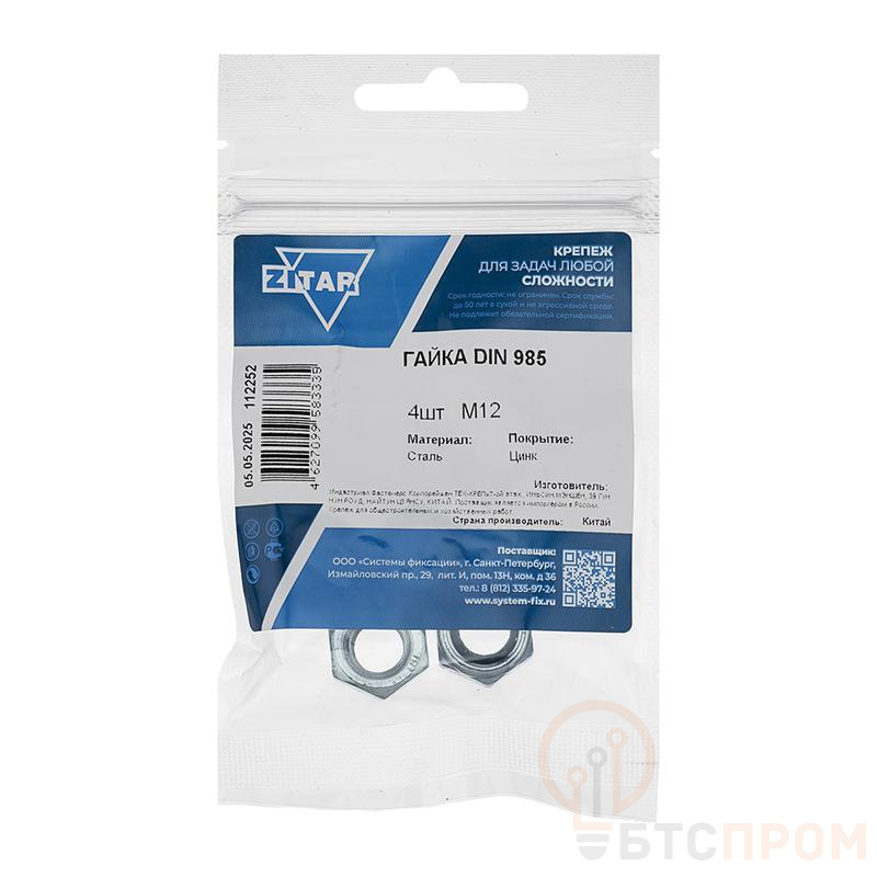 Гайка самоконтрящаяся М12 DIN 985 оцинк. (уп.4шт) Tech-Krep/Zitar 112252 фото в каталоге от BTSprom.by