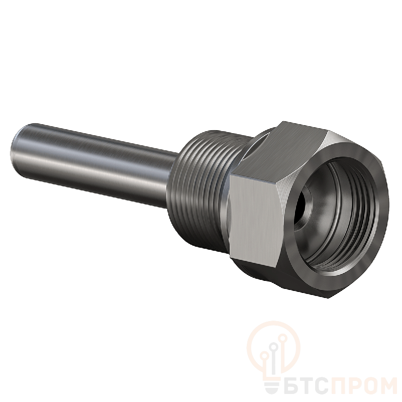 Характеристики: присоединительная резьба М16х1.5, длина погружаемой части 140 мм, рабочее давление до 25 МПа, температура измеряемой среды от -50 до +500 °C. Гильза комплектуется защитным колпачком.