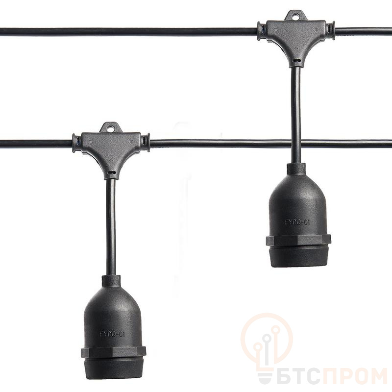 Гирлянда "Белт-лайт" FERON 41826, 10м+3м сетевой шнур, цвет черный, патрон E27*20, шаг 50см, 230ВV/50Гц, 8A, IP65, max 40W, сечение 2*0,5мм?, материал: каучук,медь,ПВХ,латунь