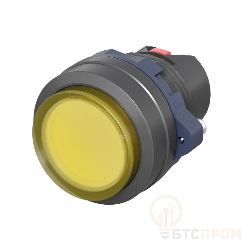 Корпус выполнен в стандартном размере M22 (22 мм), что обеспечивает простой монтаж в стандартные отверстия панелей. Основная сфера применения: станки, пульты управления, конвейерные линии, упаковочное и другое промышленное оборудование, где требуется визуальный контроль состояния (включено/выключено) или подача сигнала. Желтый цвет часто используется для функций управления циклом, запуска или перезапуска, требующих внимания оператора.