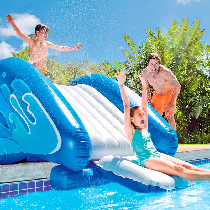 Описание Надувная водная горка будет великолепным аттракционом для Ваших детей во время отдыха на любом водоеме, будь то море, река, пруд и даже бассейн на дачном участке. Для лучшего скольжения поверхность горки необходимо смачивать водой. При наличии водопровода к горке можно подсоединить садовый шланг, и тогда поверхность для скольжения будет смачиваться водой из двух фонтанчиков, расположенных по обеим сторонам горки. Горка оснащена восемью прочными пластиковыми ручками для перемещения. Имеет пять надувных отсеков. Ремкомплект прилагается. Характеристики Цвет товара голубой Тип игрушка Материал ПВХ Минимальный возраст от 6 лет