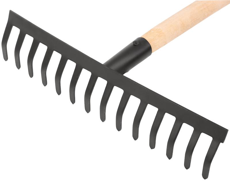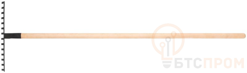 Грабли с деревянным черенком, прямой зуб. Материал: инструментальная сталь, дерево.