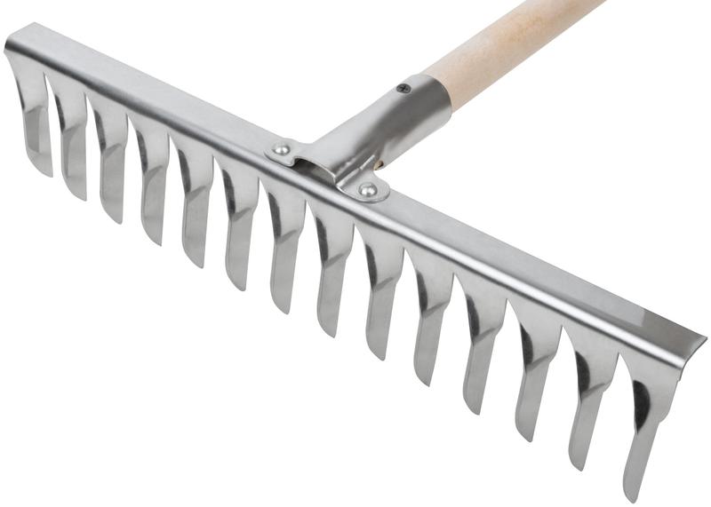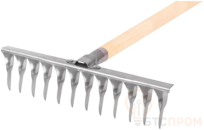 Грабли с деревянным черенком, витой зуб. Материал: нержавеющая сталь, дерево.