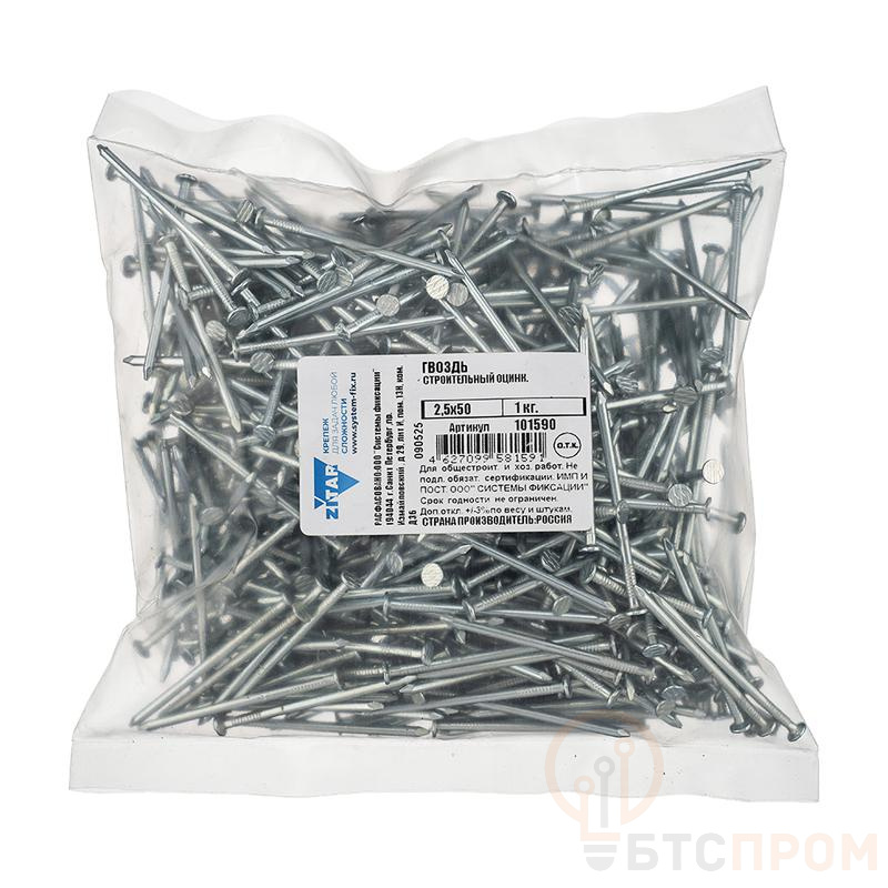Гвоздь строительный 2.5х50 мм оцинкованный от производителя Tech-Krep/Zitar – это надежный и универсальный крепеж для профессионального и бытового использования. Изделие изготовлено из качественной стали и покрыто защитным слоем цинка, что обеспечивает высокую коррозионную стойкость и значительно продлевает срок службы как самого гвоздя, так и всей конструкции.
