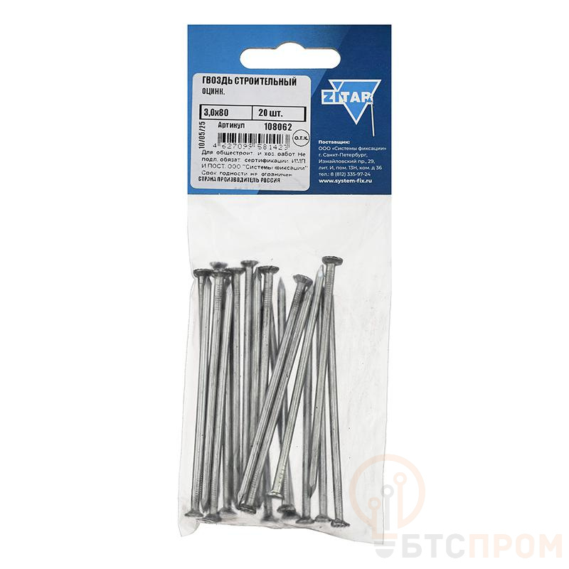 Гвоздь строительный 3.0х80 мм оцинкованный от бренда Tech-Krep/Zitar – это надежный и универсальный крепеж для профессионального и бытового использования. Изделие изготовлено из качественной стали и покрыто слоем цинка, что обеспечивает высокую коррозионную стойкость и долговечность соединений даже при эксплуатации на открытом воздухе или в условиях повышенной влажности.