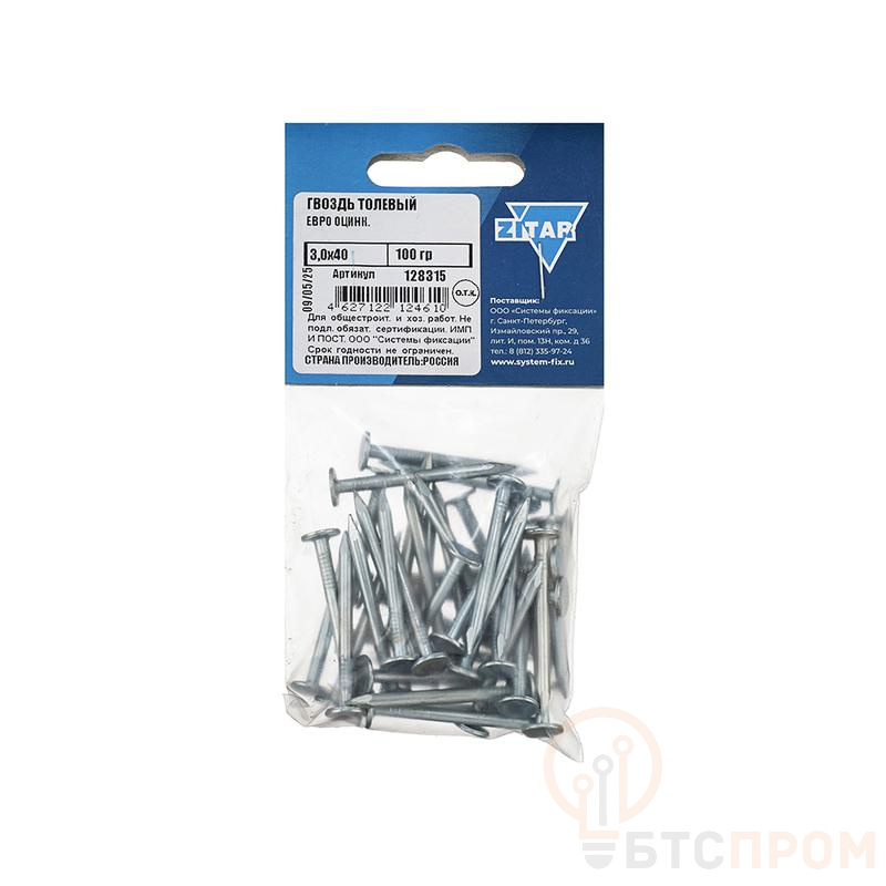 Гвоздь толевый евро 3.0х40 оцинкованный от бренда Tech-Krep/Zitar – это надежный и долговечный крепеж для специализированных кровельных и изоляционных работ. Изделие изготовлено из качественной стали и покрыто слоем цинка, что обеспечивает эффективную защиту от коррозии и увеличивает срок службы даже при эксплуатации на улице под воздействием атмосферных осадков.