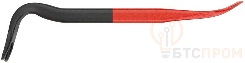 Гвоздодер с прямоугольным сечением КУРС с двумя рабочими частями изготовлен из высокоуглеродистой инструментальной стали 65 Mn. Основным легирующим элементом стали 65 Mn является марганец, который обеспечивает упругость и прочность материала на разрыв. Кроме марганца, в стали присутствуют в малых долях медь, хром, никель, кремний. Прямоугольное сечение обеспечивает высокую жесткость изделия. Инструмент имеет усиленную конструкцию и легко справляется с большими нагрузками.