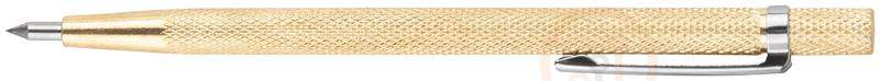 Для выполнения разметки на металлических заготовках, керамической плитке, стекле, пластике, дереве и камне. Зажим для крепления на одежде. Материал: корпус из алюминия с латунным покрытием, твердосплавный наконечник. Упаковка: блистер.