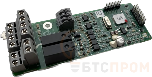Карта расширения входов/выходов для преобразователей частоты STV900, STV900 IP55, STV900H. Карта имеет на борту: 4 цифровых входа, 1 PT100, 1 PT1000, 2 релейных выхода: одноконтактные нормально замкнутые выходы.