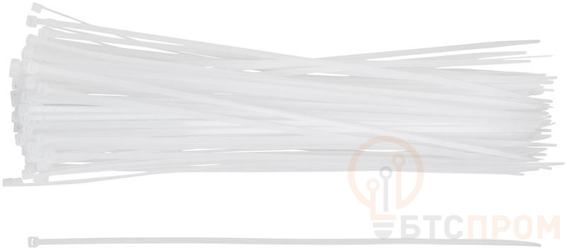 Белые. 100 шт. Предназначены для соединения и фиксации проводов, кабелей, труб и других конструкций. Монтаж может осуществляться как вручную, так и с использованием специального пистолета. Замок имеет ступенчатую фиксацию с блокировкой обратного хода. Материал: нейлон. Упаковка: п/э пакет с подвесом.