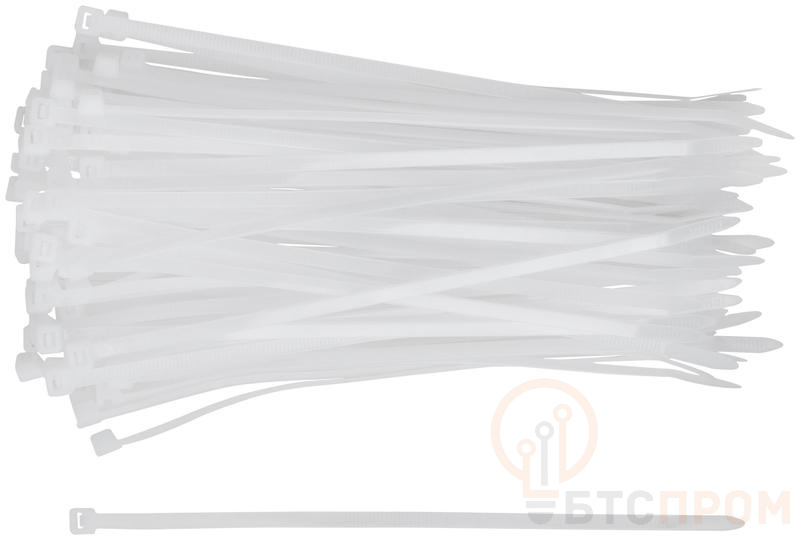 Белые. 100 шт. Предназначены для соединения и фиксации проводов, кабелей, труб и других конструкций. Монтаж может осуществляться как вручную, так и с использованием специального пистолета. Замок имеет ступенчатую фиксацию с блокировкой обратного хода. Материал: нейлон. Упаковка: п/э пакет с подвесом.