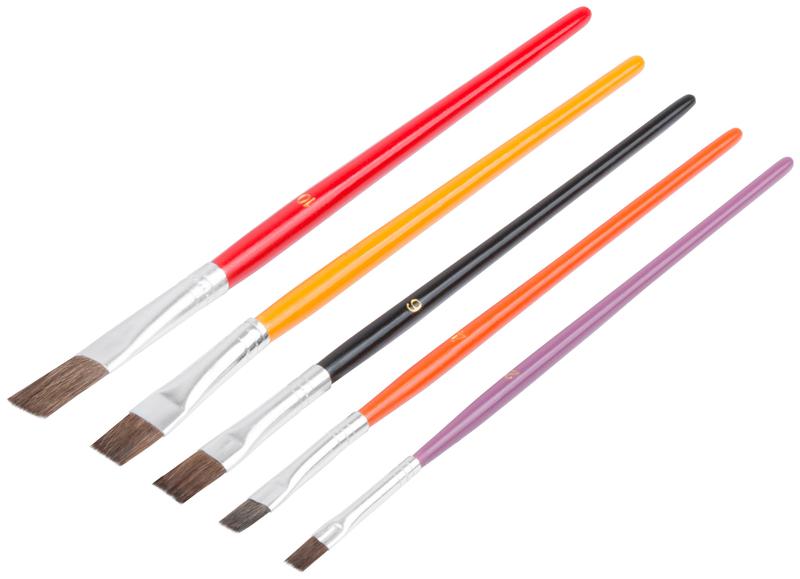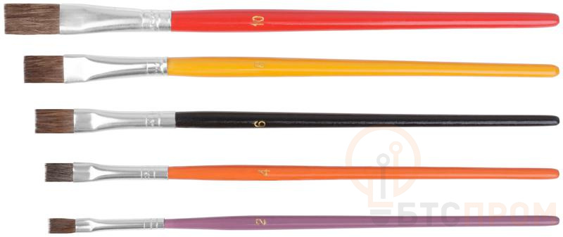 Набор плоских художественных кистей FIT IT предназначен для работы со всеми видами лакокрасочных материалов. Может использоваться при выполнении художественных, дизайнерских и малярных работ. Натуральная щетина хорошо сохраняет форму, набирает и удерживает краску. Тонкая, удлиненная ручка позволяет добраться до самых труднодоступных мест при окрашивании поверхностей. В наборе 5 шт.