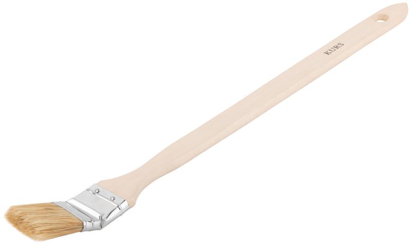 Кисть радиаторная КУРС предназначена для работы со всеми видами лакокрасочных материалов. Используется для окраски батарей, работы в труднодоступных местах. Натуральная щетина отличается высокой впитываемостью и наполняемостью краской. Деревянная ручка эргономичной формы удобно лежит в руке. Отверстие в рукоятке дает возможность хранить и сушить кисть в подвешенном положении.