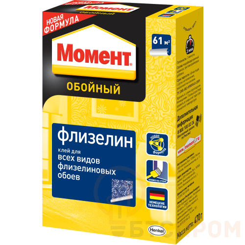Высококачественный, быстрорастворимый клей на основе крахмала и метилцеллюлозы. Момент Флизелин наносится прямо на стену и дает возможность легко корректировать обои во время приклеивания. Области применения: Предназначен для наклеивания всех видов обоев на флизелиновой основе (гладких и структурных) <ul> <li>Наносится прямо на стену</li> <li>Высокая клеящая способность</li> <li>Легкая коррекция стыков во время приклеивания</li> </ul>