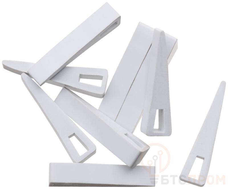 Клинья для кафеля КУРС предназначены для выравнивания кафельных плиток относительно друг друга. Клинья выполнены из прочного пластика, устойчивого к воздействию химических веществ, содержащихся в клеевых растворах. Благодаря пустотелой конструкции клинья не выдавливают клей из швов при укладке.