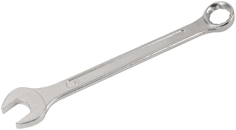Ключ комбинированный ‘’Хард’’ FIT IT предназначен для работ с крепежными элементами. Ключи изготовлены из качественной инструментальной стали, что обеспечивает их прочность и износостойкость. Накидная часть ключа выдерживает максимальные нагрузки и наиболее эффективна при первичном откручивании и окончательном затягивании. Рожковая часть ключа эффективна при работе в труднодоступных местах. Эргономичная форма ключей обеспечивает надежный хват. Хромированное покрытие предотвращает коррозию.