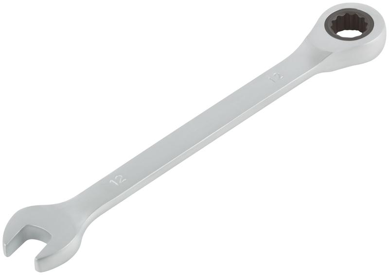 Ключ комбинированный трещоточный FIT IT предназначен для работ с крепежными элементами. Трещоточный механизм ускоряет процесс затягивания болтов. 72 зубца обеспечивают плавный и мягкий ход механизма. 12-гранный профиль накидной части обеспечивает надежный захват крепежных элементов и снижает риск их деформации. Корпус ключа изготовлен из термообработанной легированной стали, а зубья трещотки выполнены из хромованадиевого сплава. От ржавчины инструмент защищает хромированное покрытие.