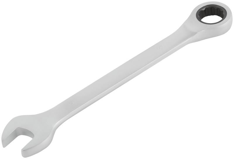 Ключ комбинированный трещоточный FIT IT предназначен для работ с крепежными элементами. Трещоточный механизм ускоряет процесс затягивания болтов. 72 зубца обеспечивают плавный и мягкий ход механизма. 12-гранный профиль накидной части обеспечивает надежный захват крепежных элементов и снижает риск их деформации. Корпус ключа изготовлен из термообработанной легированной стали, а зубья трещотки выполнены из хромованадиевого сплава. От ржавчины инструмент защищает хромированное покрытие.