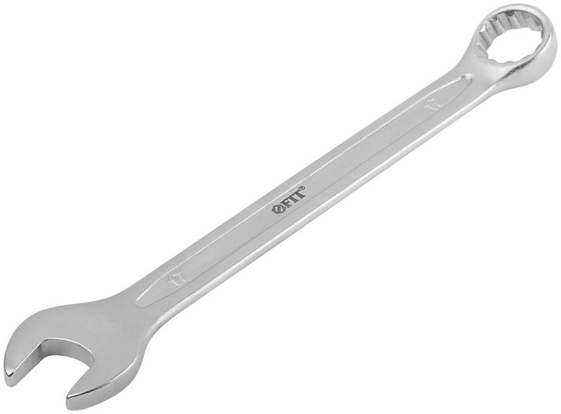 Ключ комбинированный FIT HQ ‘’Гранд’’ предназначен для работ с крепежными элементами. Ключ изготовлен из закаленной хром-ванадиевой стали с последующей холодной штамповкой с целью повышения прочности и износостойкости. Прецизионная обработка рабочих частей увеличивает точность ключей. Наклон рабочих частей в 15° повышает эффективность работы. Накидная часть с 12-гранным профилем прочно фиксируется на крепеже. Эргономичная форма ключей обеспечивает надежный хват. Хромированное покрытие предотвращает коррозию.