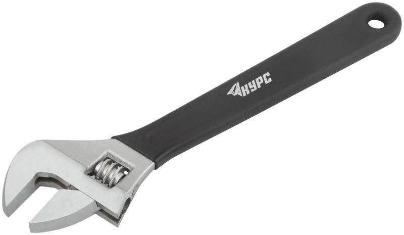 Ключ разводной КУРС — универсальный инструмент для сантехнических и слесарных работ, заменяющий целый набор обычных рожковых ключей! Ключ изготовлен из штампованной термообработанной инструментальной стали и обладает высокой прочностью и износостойкостью. Узкие губки повышают эффективность работы в труднодоступных местах. Хромированное покрытие предотвращает коррозию. Покрытие ПВХ на рукоятке предотвращает проскальзывание во время работы и обеспечивает надежный хват. Отверстие в рукоятке позволяет хранить инструмент в подвешенном положении.