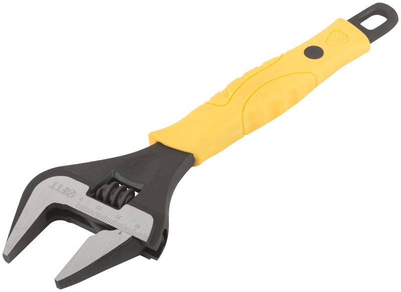 Разводной ключ ‘’Эталон’’ FIT HQ с экстра увеличенным рабочим диапазоном губок — универсальный инструмент для сантехнических и слесарных работ, заменяющий целый набор обычных рожковых ключей. Диапазон губок позволяет работать с крепежными элементами больших диаметров. Штампованная хром-ванадиевая сталь и закалка губок до твердости HRC 45–50 обеспечивают высокую прочность и износостойкость инструмента. Длинные и тонкие губки способствуют эффективной работе в труднодоступных местах. Пластиковая накладка эргономичной формы обеспечивает надежный хват. Регулировочный винт выдерживает высокие нагрузки. Размерная шкала позволяет точно регулировать раскрытие губок. Отверстие в рукоятке для хранения позволяет хранить инструмента в подвешенном положении.