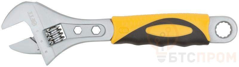 Ключ разводной ‘’Классик’’ FIT IT — универсальный инструмент для сантехнических и слесарных работ, заменяющий целый набор обычных рожковых ключей! Изготовлен из штампованной закаленной инструментальной стали и обладает высокой прочностью и износостойкостью. Увеличенный рабочий диапазон губок позволяет захватывать предметы больших размеров. Гравированная размерная шкала дает возможность точно открывать на нужный размер. Фосфатированное покрытие предотвращает коррозию. Пластиковая прорезиненная рукоятка предотвращает проскальзывание инструмента в руках во время работы и обеспечивает надежный хват. Дополнительные встроенные накидные ключи расширяют спектр применения.