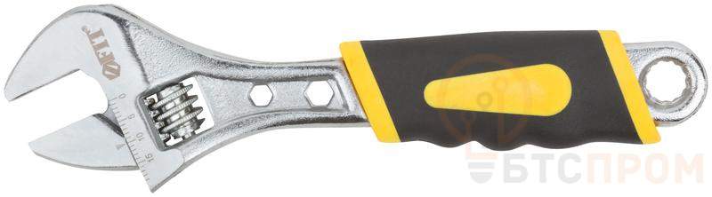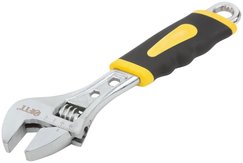 Ключ разводной ‘’Старт’’ FIT IT — универсальный инструмент для сантехнических и слесарных работ, заменяющий целый набор обычных рожковых ключей! Ключ изготовлен из штампованной термообработанной инструментальной стали с хромированным покрытием. Накидной ключ, встроенный в рукоятку, делает данное изделие многофункциональным. Удобная эргономичная рукоятка с ПВХ-накладкой не скользит в руке во время работы. Размерная шкала позволяет точно настроить ключ.