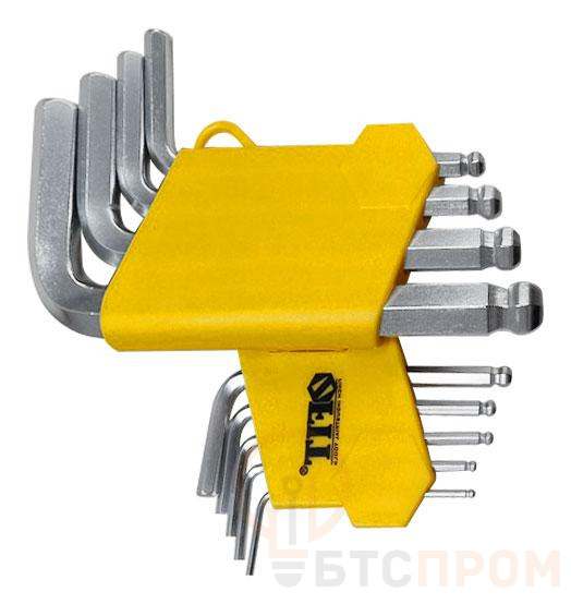 Для работы с крепежными элементами. С шаровым наконечником, позволяющим работать под углом до 35°. Закалка ключей до твердости 50-54 HRC обеспечивает высокую износостойкость. Хромированное антикоррозийное покрытие. Две рабочие стороны повышают эффективность работы в труднодоступных местах. 9 размеров в наборе способствуют выполнению широкого спектра задач. Эргономичный пластиковый держатель позволяет организованно хранить ключи. Маркировка на ключах и держателе облегчают идентификацию.