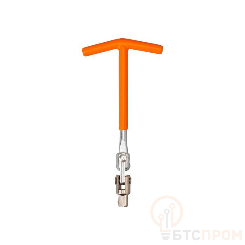 Свечной ключ предназначен для снятия и установки свечей зажигания бензиновых двигателей внутреннего сгорания. Инструмент оснащен шарнирным механизмом, что существенно облегчает использование в труднодоступных местах. Рукоятка ключа покрыта специальным материалом, который предотвращает скольжение, обеспечивая безопасное и удобное использование. Наконечник защищен от коррозии дополнительным покрытием, что гарантирует долгий срок службы инструмента.