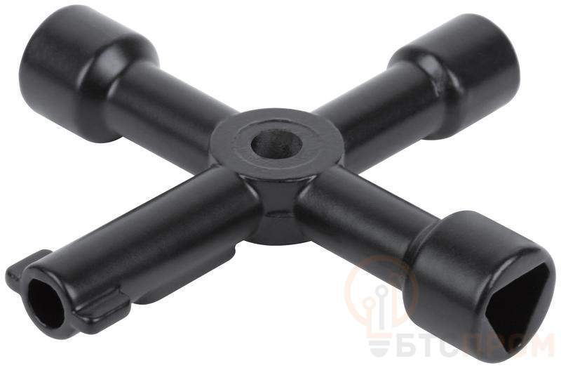 Ключ универсальный для электрошкафов 4-в-1 FIT IT предназначен для открытия электрических и сантехнических шкафов, в коммуникациях зданий и транспорта, а также в системах рециркуляции воздуха. Ключ имеет 4 размера наиболее распространенных форм. Изготовлен из цинкового сплава, обладающего высокой износостойкостью и длительным сроком службы. Черненое покрытие ключа предотвращает коррозию. Компактный размер ключа дает возможность носить его в кармане.