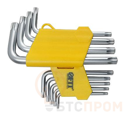Для работы с крепежными элементами. Закалка ключей до твердости 50-54 HRC обеспечивает высокую износостойкость. Хромированное антикоррозийное покрытие. Две рабочие стороны повышают эффективность работы в труднодоступных местах. 9 размеров в наборе способствуют выполнению широкого спектра задач. Эргономичный складной пластиковый держатель с подвесом позволяет организованно хранить ключи. Маркировка на ключах и держателе облегчают идентификацию.