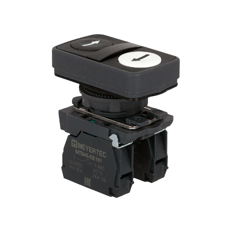 Изделие отличается четкой фиксацией положений и надежными контактами. Цветовая схема «черный/белый» обеспечивает хорошую визуальную идентификацию. Кнопка предназначена для монтажа на стандартную панель или дверь шкафа управления. Основная сфера применения: системы автоматизации, промышленное оборудование, пульты управления станками, вентиляционными установками и другими устройствами, где требуется переключение режимов работы или подача команд в двух направлениях.