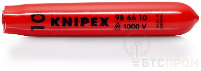 Колпачок защитный самофиксирующийся от бренда Knipex (артикул 986610) предназначен для надежной изоляции и защиты концов кабелей, жил и прутков. Изделие имеет внутренний диаметр 10 мм и длину 80 мм, что делает его идеальным для работы с проводниками большого сечения.