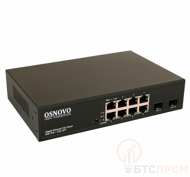 Коммутатор PoE SW-80802(150Вт) Gigabit Ethernet на 8 RJ45 + 2 SFP порта OSNOVO 13596 фото в каталоге от BTSprom.by