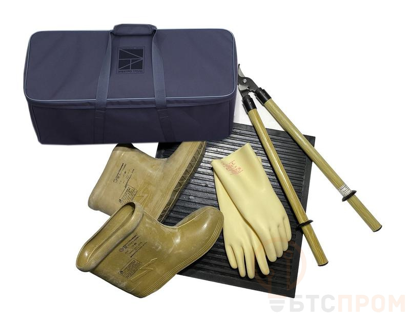 Комплект диэлектрический КД-01Э от ЭЛЕКТРО ТРЕЙД (ET-KD01) — это профессиональный набор средств защиты для безопасной работы в электроустановках до 1000 В. В комплект входят диэлектрические перчатки, боты, коврик и указатель напряжения, обеспечивающие надежную изоляцию от поражения электрическим током.