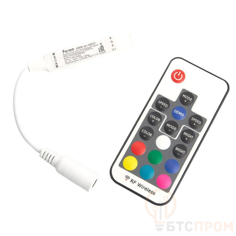 Контроллер RGB мin для светодиодной ленты с П/У бел. 12-24В LD66 FERON FERON 48032 фото в каталоге от BTSprom.by