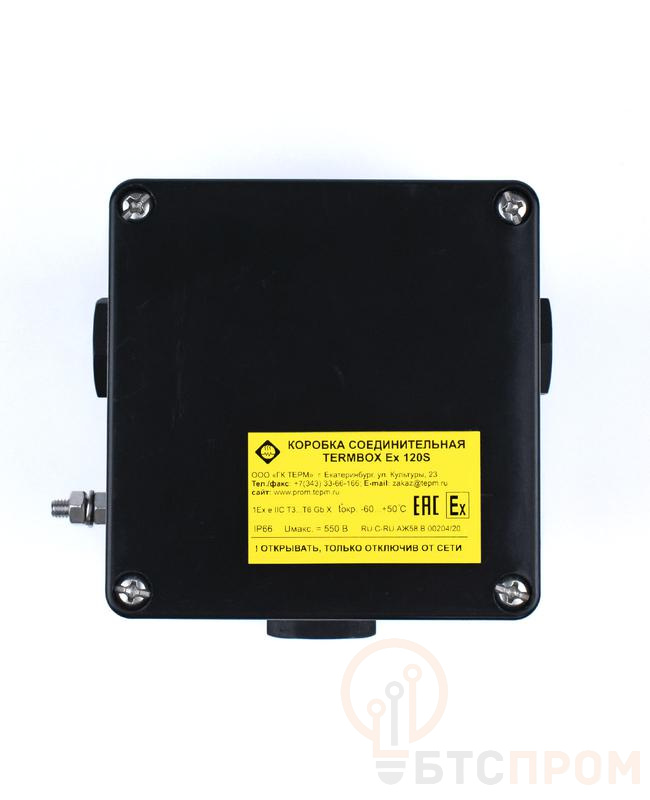 Коробка соединительная предназначена для выводов датчиков температуры с кабелями систем управления и контроля соед. и разветвления EXTHERM TERMBOX Ex 120S
